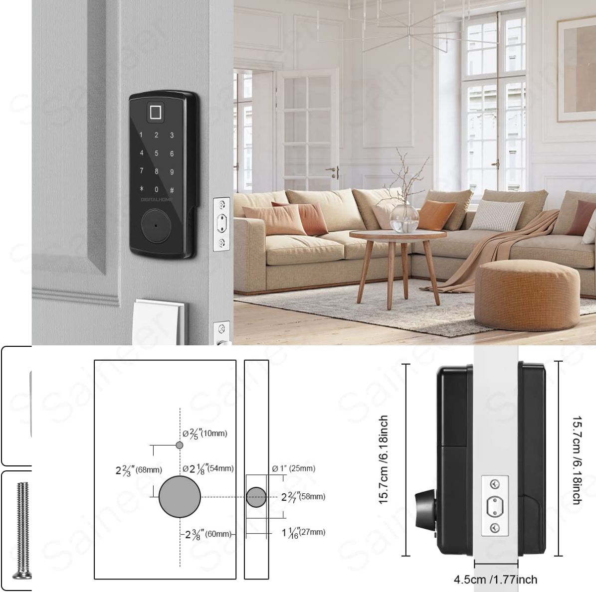 Auto-lock: It automatically locks itself when the door is closed — no need to manually secure it. This ensures your home stays protected even if you forget to lock the door.