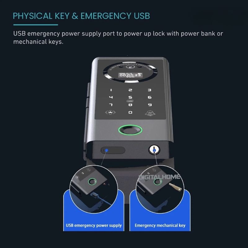 Backup Key - Mechanical keys are kept for backup, with the keyhole strategically located for added security.