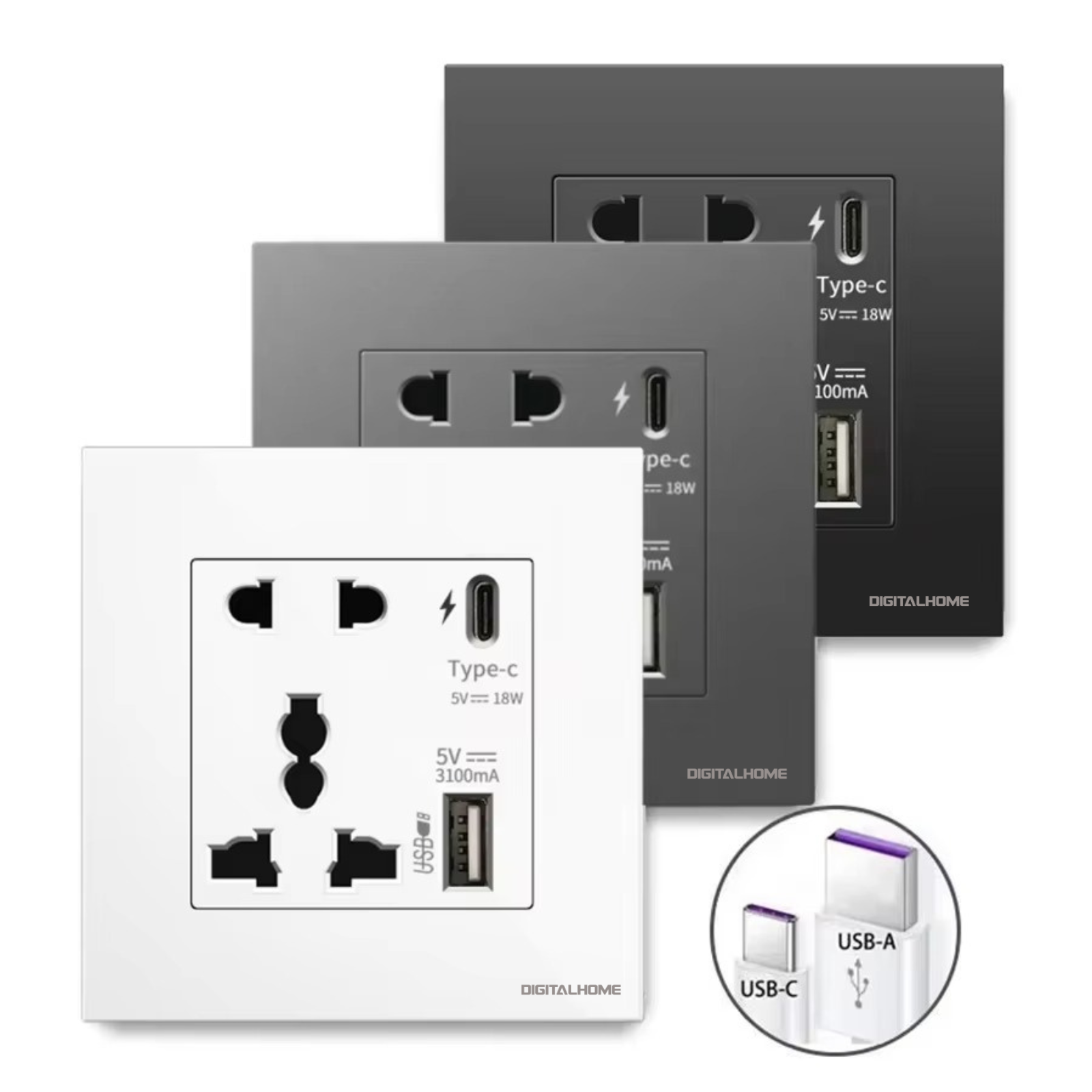 Upgrade your power outlets with the SK200 DigitalHome Universal Wall Socket, designed for modern homes, offices, and hotels. With its sleek finish and multifunction design, this socket combines universal compatibility with fast-charging convenience, keeping your devices powered safely and efficiently.